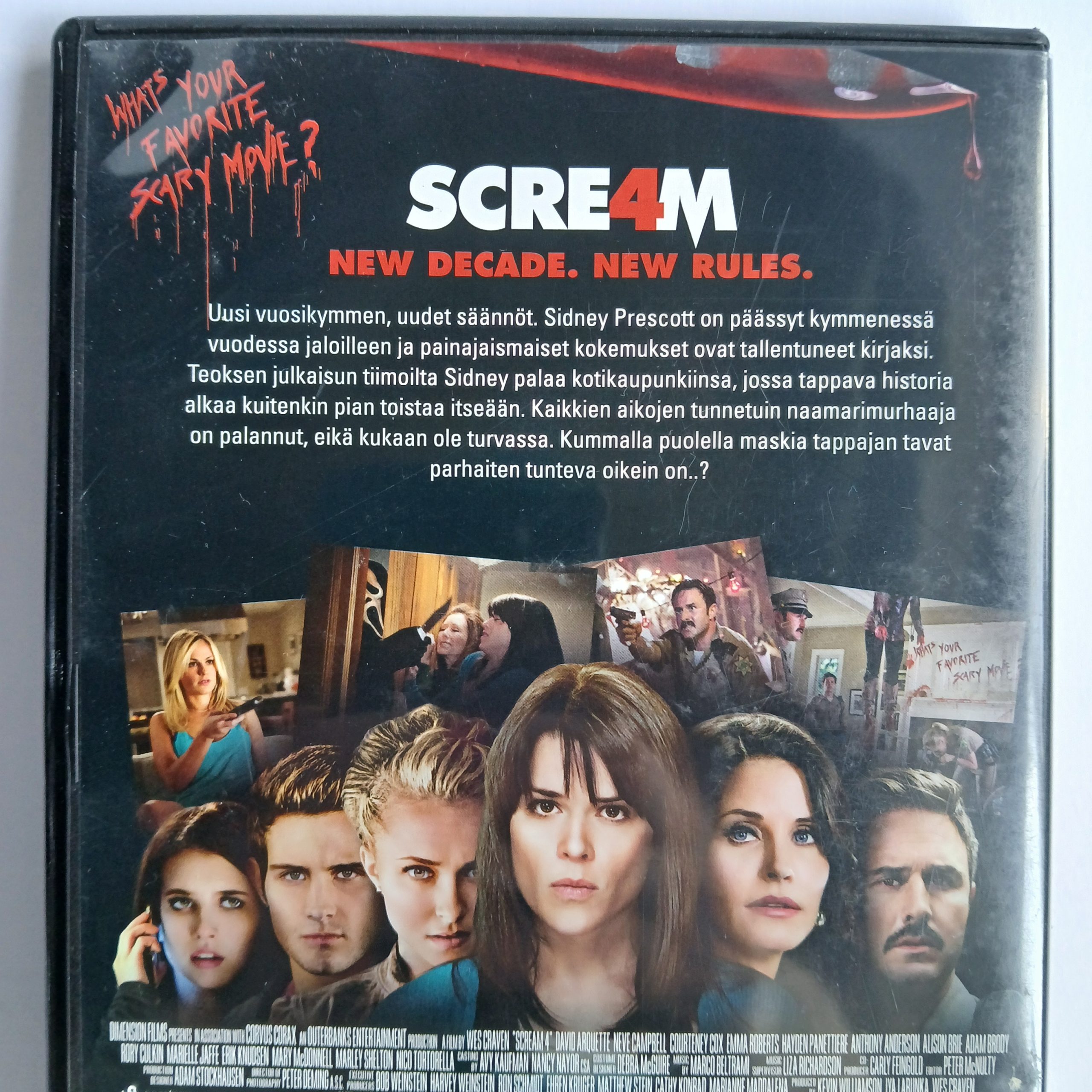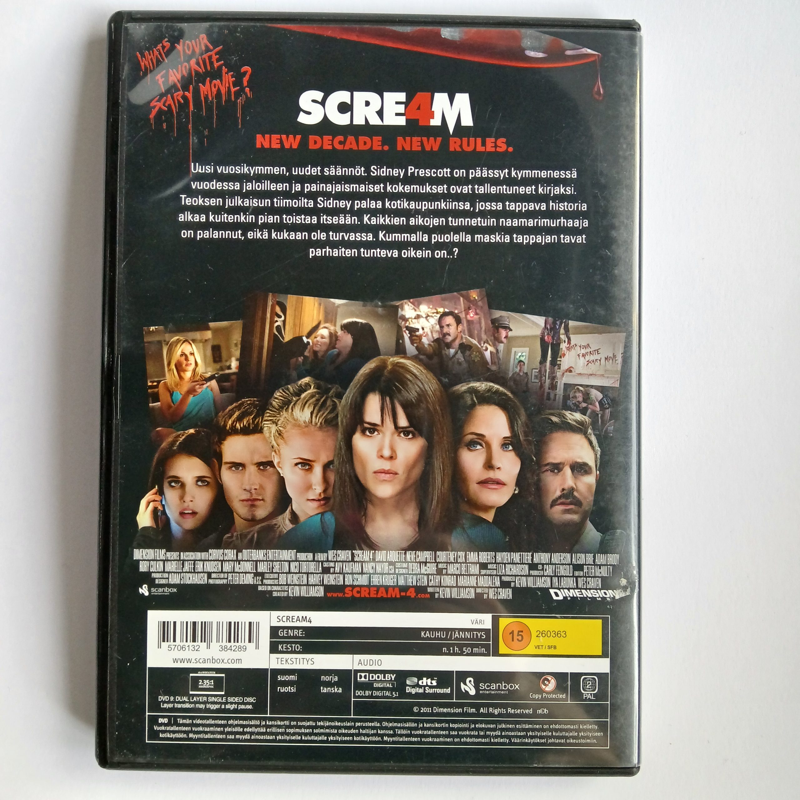 Käytetty Dvd – Scream 4. Levy hyväkuntoinen, kansissa hieman naarmuja. K-15
